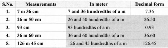 Express the following measurements in terms of metre and in decimal form. One is done for you.