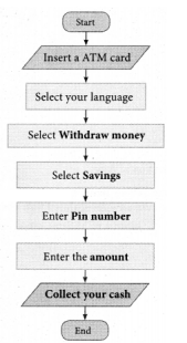 The steps of withdrawing cash from your saving bank account using ATM card are explained in the figures given below. Construct an appropriated flow chart.