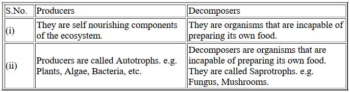 Producers are self nourishing components of the ecosystem. Hence they are called Autotrophs. They are found both on land and water, e.g. Plants, Algae, Bacteria etc.