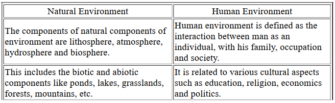 Human environment is defined as the interaction between man as an individual, with his family, occupation and society. It is also related to various cultural aspects such as education, religion, economics and politics.