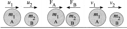 If a body $A$ applies a force $F_{A}$ on a body $B$, then the body $B$ reacts with force $F_{B}$ on the body $A$, which is equal to $\mathrm{F}_{\mathrm{A}}$ in magnitude, but opposite in direction.