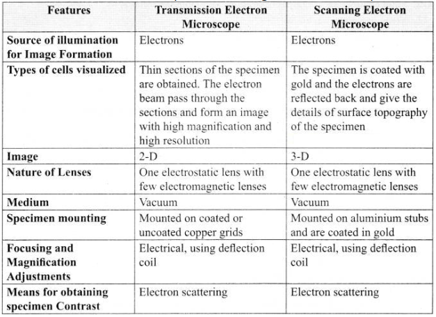 Compare Transmission Electron Microscope with Scanning Electron Microscope.