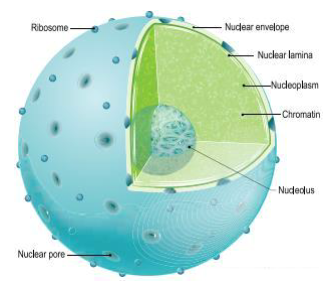 Nucleus is an important unit of cell which control all activities of the cell. Nucleus holds the hereditary information. It is the largest among all cell organelles. It may be spherical, cuboidal, ellipsoidal or discoidal. It is surrounded by a double membrane structure called nuclear envelope, which has the inner and outer membrane. The inner membrane is smooth without ribosomes and the outer membrane is rough by the presence of ribosomes and is continues with irregular and infrequent intervals with the endoplasmic reticulum.