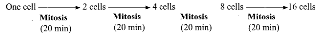 One cells takes 80 minutes to form 16 cells. If 2 cells undergoes division simultaneously, it take 160 minutes (2 hours 40 minutes) to form 32 cells.