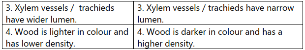 Write down the differences between spring wood and autumn wood.