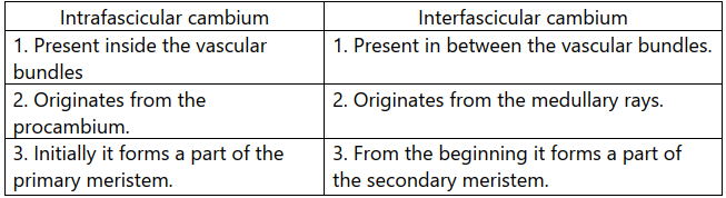 Distinguish between Intrafascicular Interfascicular cambium.