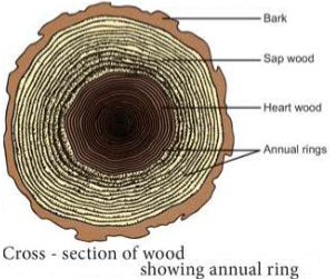The annual ring denotes the combination of early wood and late wood and the ring becomes evident to our eye due to the high density of late wood. Sometimes annual rings are called growth rings but it should be remembered all the growth rings are not annual. In some trees more than one growth ring is formed with in a year due to climatic changes. Additional growth rings are developed within a year due to adverse natural calamities like drought, frost, defoliation, flood, mechanical injury and biotic factors during the middle of a growing season, which results in the formation of more than one annual ring.