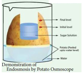- Endosmosis: Endosmosis is defined as the osmotic entry of solvent into a cell or a system when it is placed in a pure water or hypotonic solution. eg: dry raisins. (high solute and low solvent) placed in the water, it swells up due to turgidity.