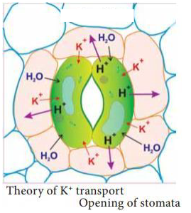 Describe the theory of $\mathrm{K}+$ transport theory of stomatal opening.