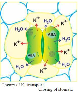 4. $A B A$ stops further entry of $K+$ ions and also induce $K+$ ions to leak out to subsidiary cells from guard cell.