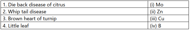 Deficiency: Die back of citrus, Reclamation disease of cereals and legumes, chlorosis, necrosis and Exanthema in Citrus.
