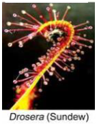 (ii) Drosera (Sundew): It consists of long club shaped tentacles which secrete sticky digestive fluid which looks like a sundew.