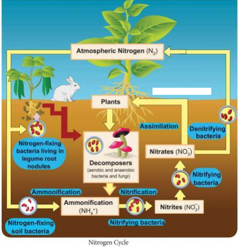 (iv) Denitrification carried out by nitrosomonas and nitrobacter.