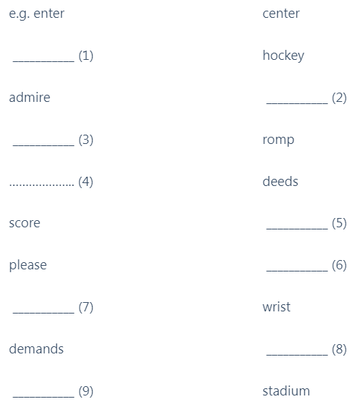 (thanksgiving, exchange, glad, confesses, physiques, zealous, satisfied, aims, admires)
