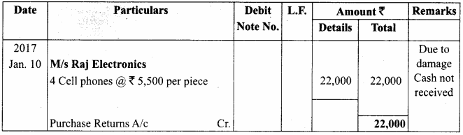 Jan. 10 Returned to M/s. Raj Electronics 4 cell phones damaged and cash not received