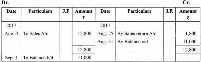 - Aug. 25 – Sales returns of ₹ 1,800 by Madhavan as per Credit Note No. 11 for which cash is , not paid