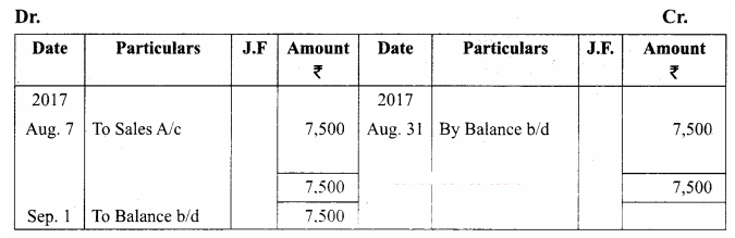 - Aug. 7 – Sold goods to Kanagasabai as per Invoice No. 78 for ₹ 7,500 on credit