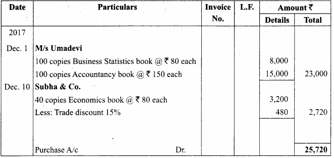 Dec. 1 – Bought from M/s. Umadevi on credit