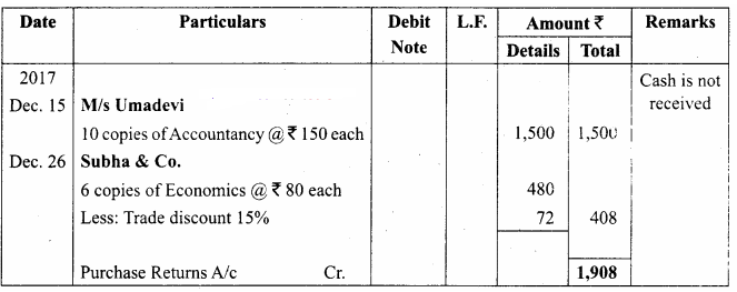 Dec. 15 Returned to M/s. Uma Devi 10 copies of damaged Accountancy book for which cash is not received
