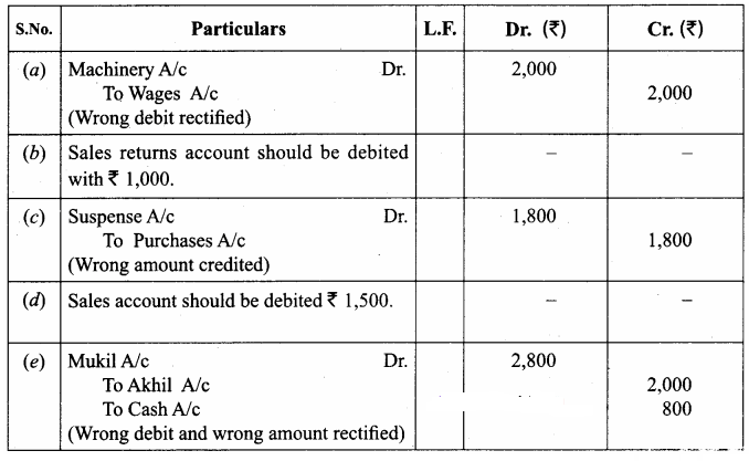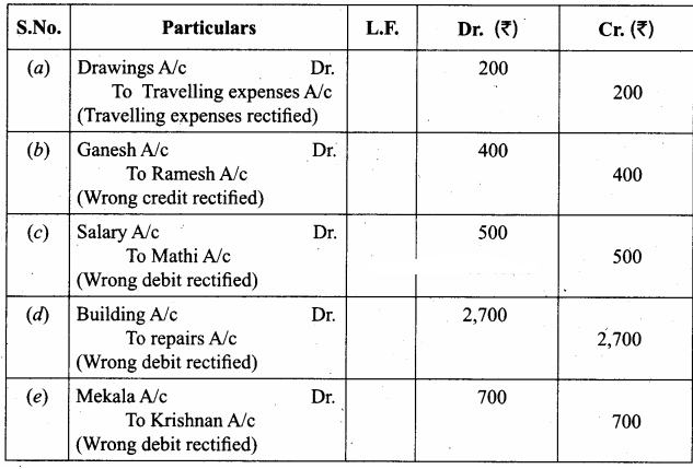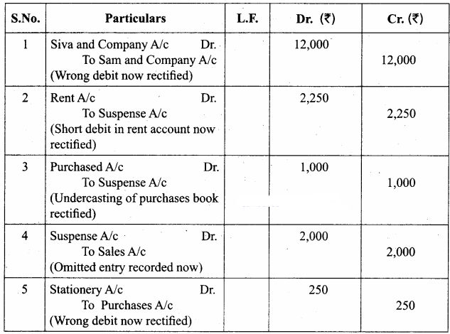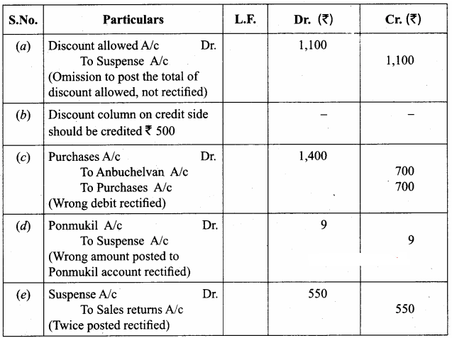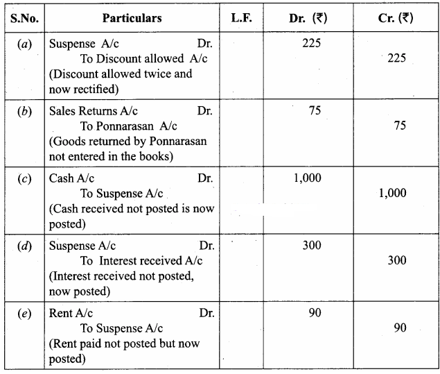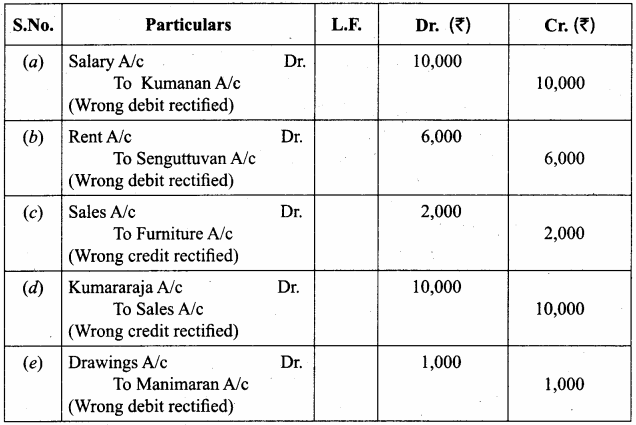 Chapter 9 - Rectification of Errors - 11th Accounting Guide Samacheer Kalvi Solutions - Text Book Back Questions and Answers
