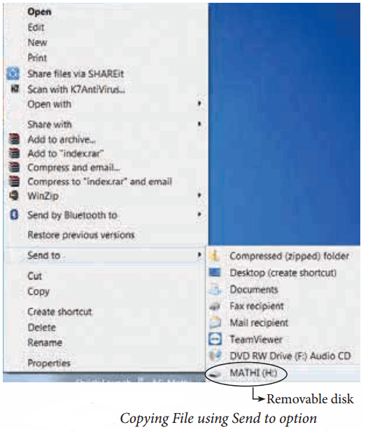 - Click Send To and select the Removable Disk associated with the USB flash drive.