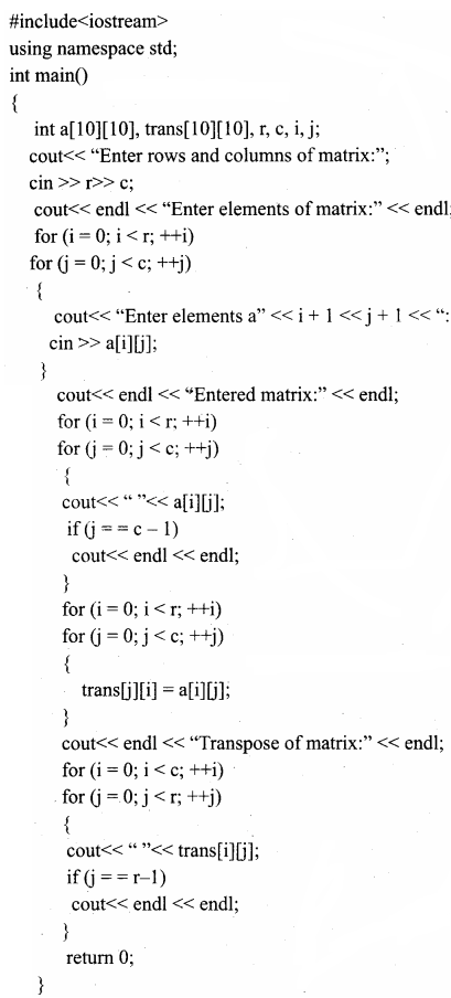 Text Book Back Questions and Answers - Chapter 12 - Arrays and Structures - 11th Computer Science Guide Samacheer Kalvi Solutions