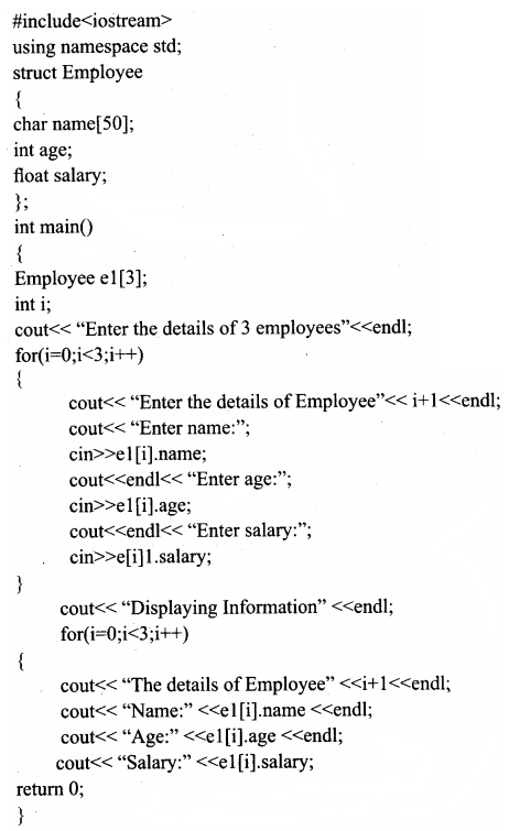 Let an organisation have three employees. If we want to read and print all their details, write a C++program for the following structure definition