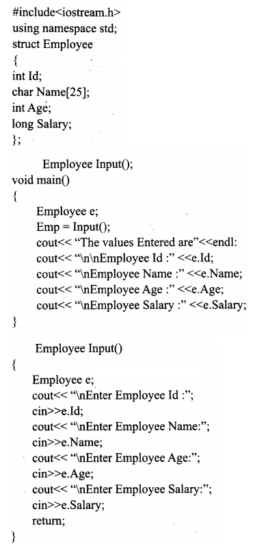 Write a user defined function to return the structure after accepting value through keyboard. The structure definition is as follows: struct Item{int item no;float price;};