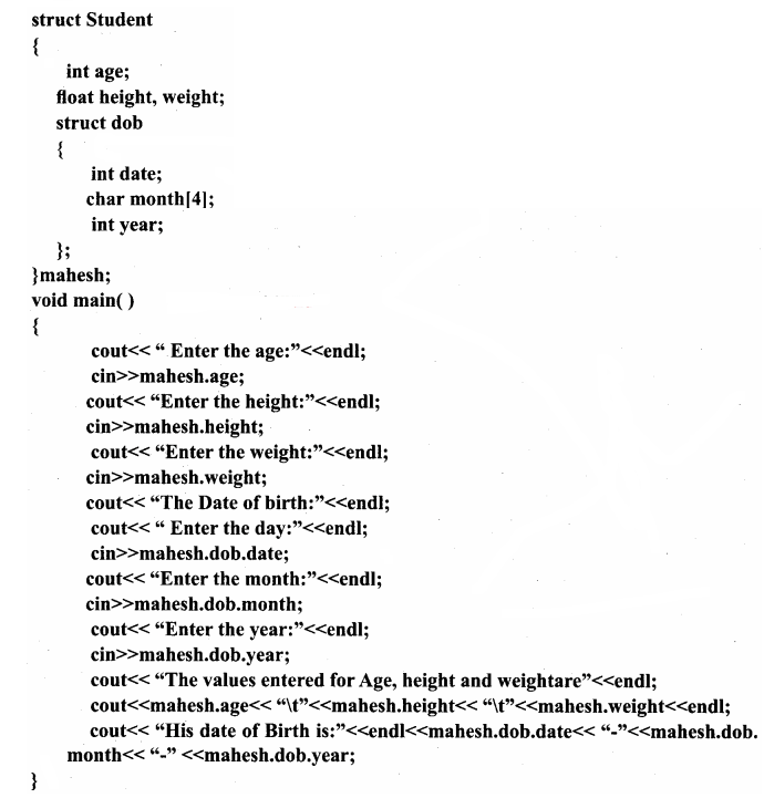 cout << “\n Enter the item manufacturing month:”; cin >> i.date.mm;