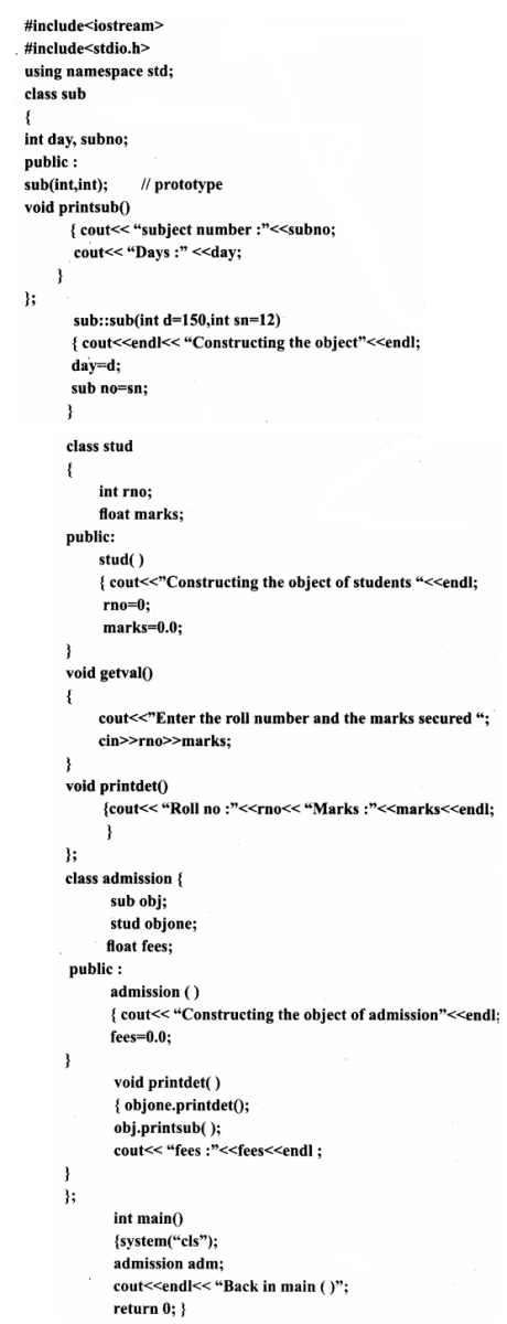 cout << “\n Constructor of class – simple invoked for implicit and explicit call” << endl;