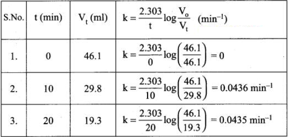 & \mathrm{k}=\frac{2.303}{40 \min } \log \frac{100}{(100-60)} \\