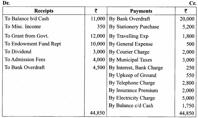 5. Final Accounts: (a) Receipt and payments Account