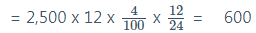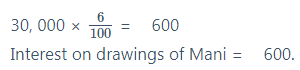 Interest on drawings = Amount x Rate of Interest x