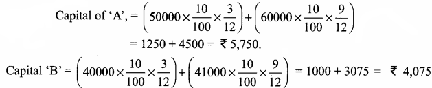 Interest on Capital: Mr A and B started a business on 1.4.2014, with capital of Rs. 60,000 and 50,000, respectively. On 1st July 2014. Mr. A withdrew Rs 8,000 from his capital. Mr. B introduced additional capital of Rs 10,000 on 30.9.2014. Calculate interest on capital @ 5% p.a. for year ending 31.3.2015.