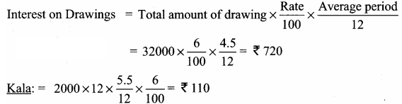 Priya and Kala are partners Priya draws Rs. 8,000 at end of each quarter. Interest on drawings @6% p.a. Kala draws Rs. 2000/- per month at the end of the month.