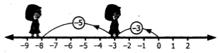Then we move 5 steps backward to represent $-5$ and reach $-8$. $\therefore(-3)+(-5)=-8$