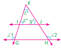 &\text { Again } \angle \mathrm{GHK}=\mathrm{y}^{\circ} \text { (corresponding angles if } \mathrm{KH} \text { is a transversal) } \\