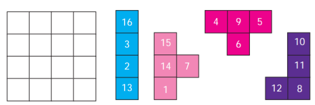 Using the given tetrominoes with numbers on it complete the $4 \times 4$ magic square?