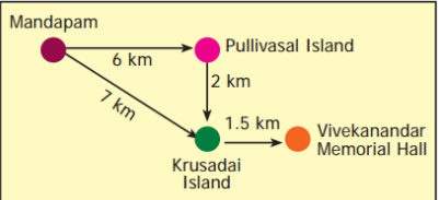 $\therefore$ Shortest route : Mandapam $\rightarrow$ Krusadai Island $\rightarrow$ Vivekanandar Memorial Hall.