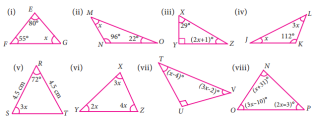 i.e., In $\triangle \mathrm{ABC}, \angle \mathrm{A}=8 \mathrm{x}+7$