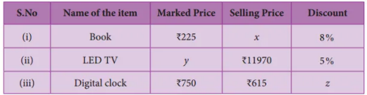 $\therefore$ Discounted value $=\mathrm{MP} \times\left(\frac{(100-d \%)}{100}\right)$