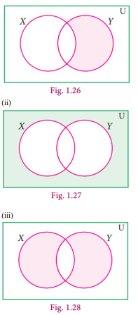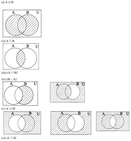 Let A and B be two overlapping sets and the universal set U. Draw appropriate Venn diagram for each of the following,