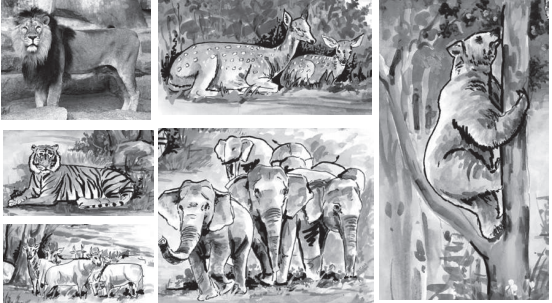 காட்டு விலங்குகளின் படங்களைத் திரட்டி படத்தொகுப்பு உருவாக்குக.