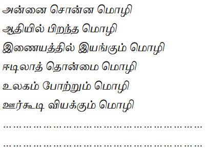 புதுக்கோலம் புனைந்து தமிழ் வளர்ப்பாய் – உங்கள் பங்கினைக் குறிப்பிடுக.