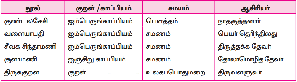 இப்பாடல் காட்டும் இலக்கியங்களின் பெயர்களை வரிசைப்படுத்துக.