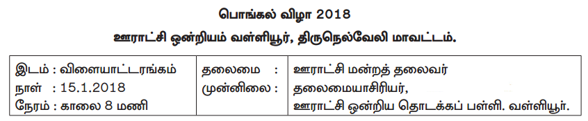 உங்கள் ஊரில் பொங்கல் விழா நடைபெறுகிறது. அவ்விழாவில் சாக்கு ஓட்டம், தவளை ஓட்டம், புட்டியில் தண்ணீர் நிரப்புதல், இசை நாற்காலி, உருளைக் கிழங்கு பொறுக்குதல், ஊசியில் நூல் கோத்தல், கோலம் போடுதல், கயிறு இழுத்தல், மெதுவாக மிதிவண்டி ஓட்டுதல், பானை உடைத்தல் ஆகிய போட்டிகள் நடைபெறுகின்றன. அப்போட்டிகள் குறித்து நேரடி வருணனை செய்க.