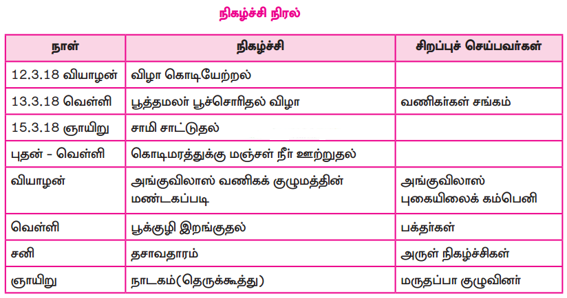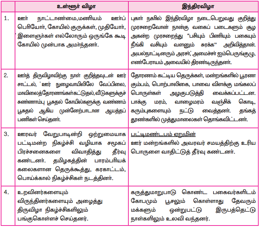 உங்கள் ஊரில் நடைபெறுகின்ற விழா முன்னேற்பாடுகளை இந்திரவிழா நிகழ்வுகளுடன் ஒப்பிடுக.