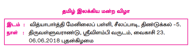 பள்ளியில் நடைபெற்ற இலக்கியமன்ற விழா நிகழ்ச்சிகளைத் திரட்டித் தொகுப்புரை உருவாக்குக.