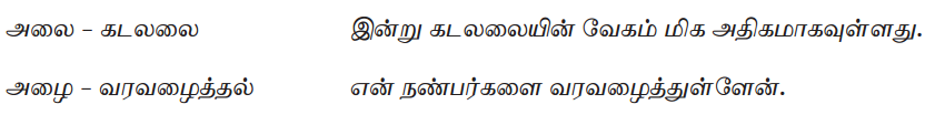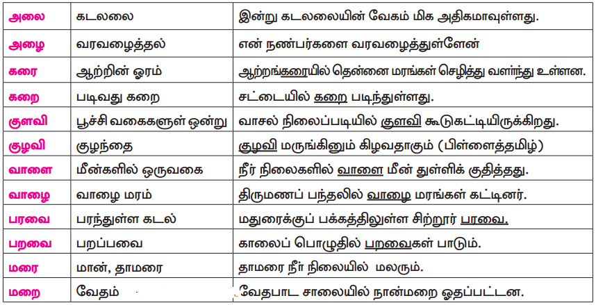 கரை, கறை; குளவி, குழவி; வாளை, வாழை; பரவை, பறவை; மரை, மறை;