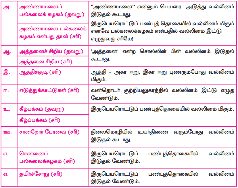 Detailed Solutions Of Samacheer Kalvi 9th Tamil Guide Chapter 4.5 வல்லினம் மிகா இடங்கள்